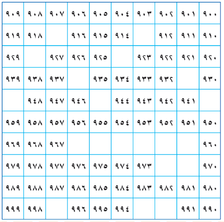 جدول الأرقام من 1 إلى 100 مكتوبة بالعربي