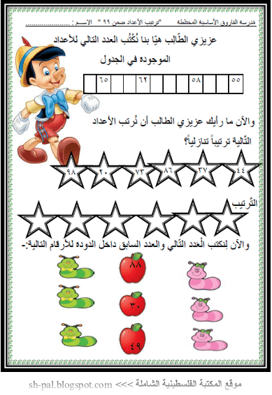 ورقة عمل لدرس ترتيب الأعداد ضمن 99 للصف الثاني الفصل الأول منتديات المعلم الفلسطيني