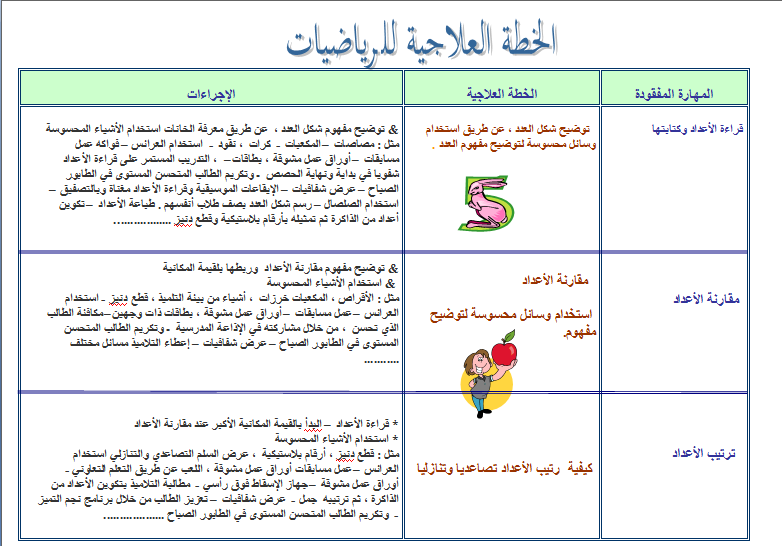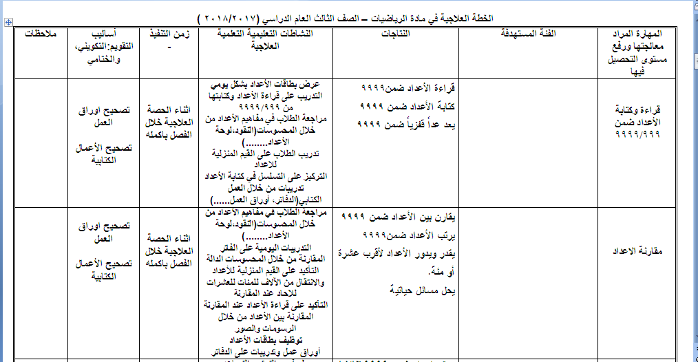 نموذج Word قابل للتعديل الخطة العلاجية لمادتي الرياضيات واللغة العربية للصف الثالث منتديات صقر الجنوب
